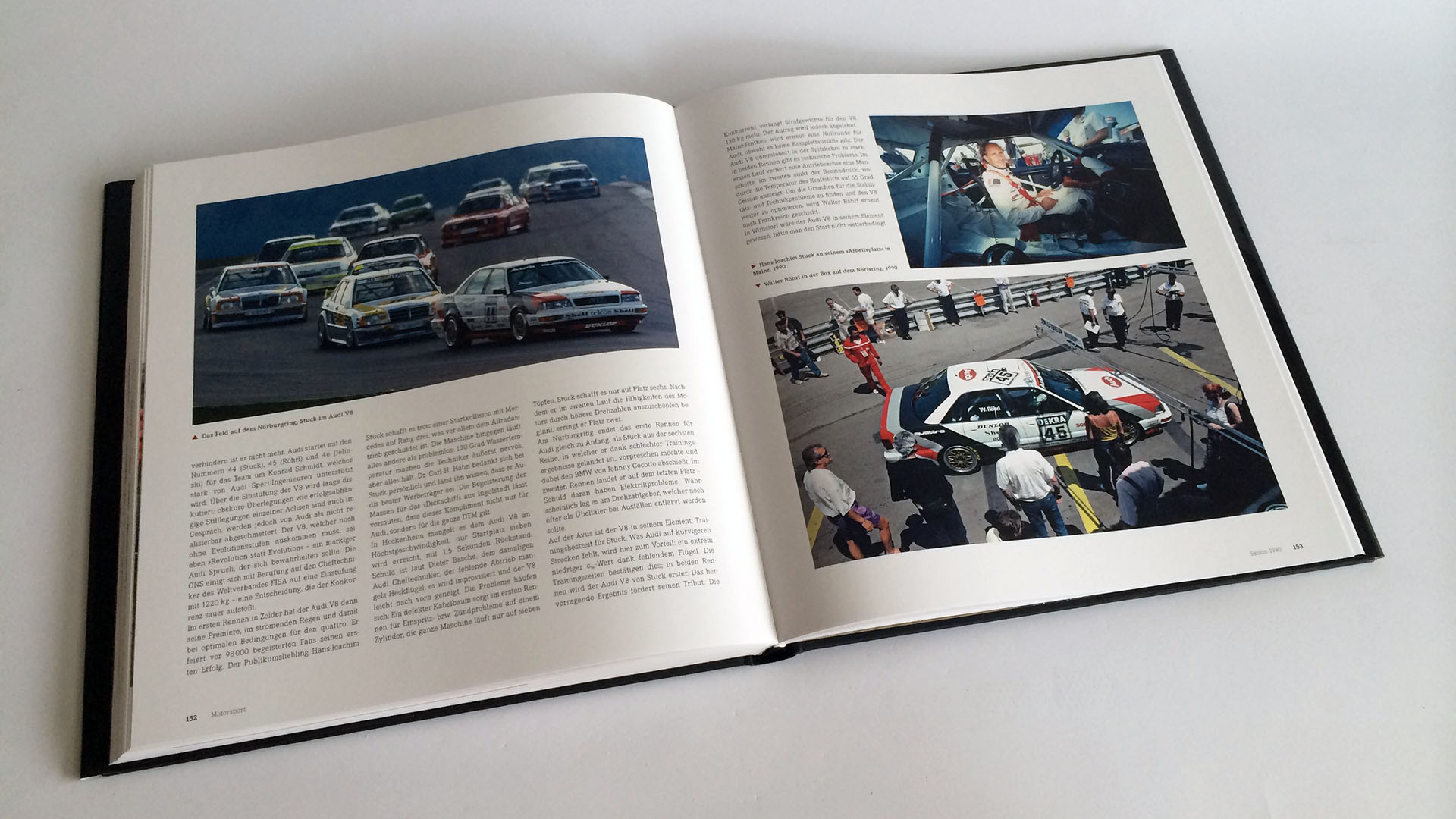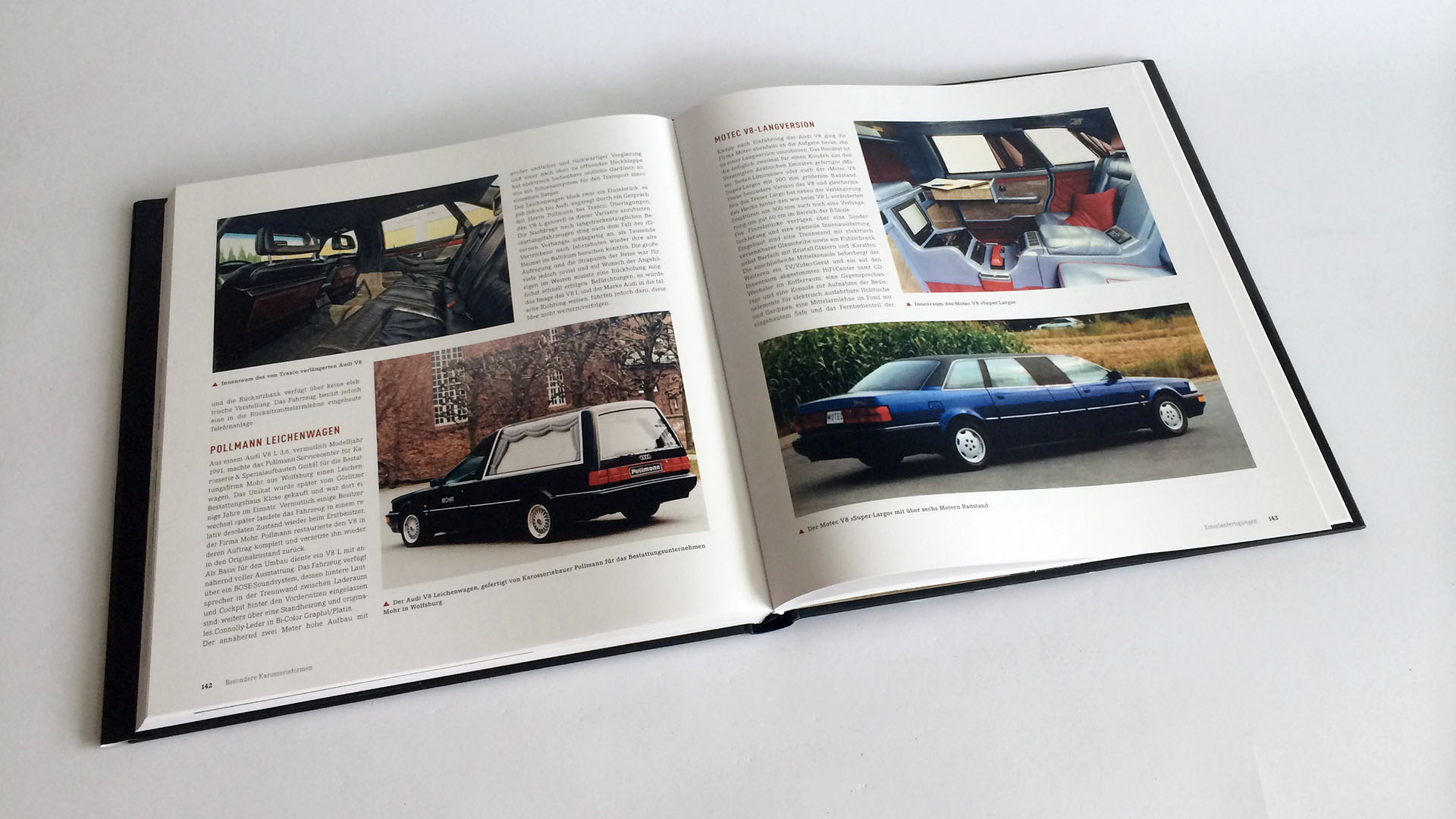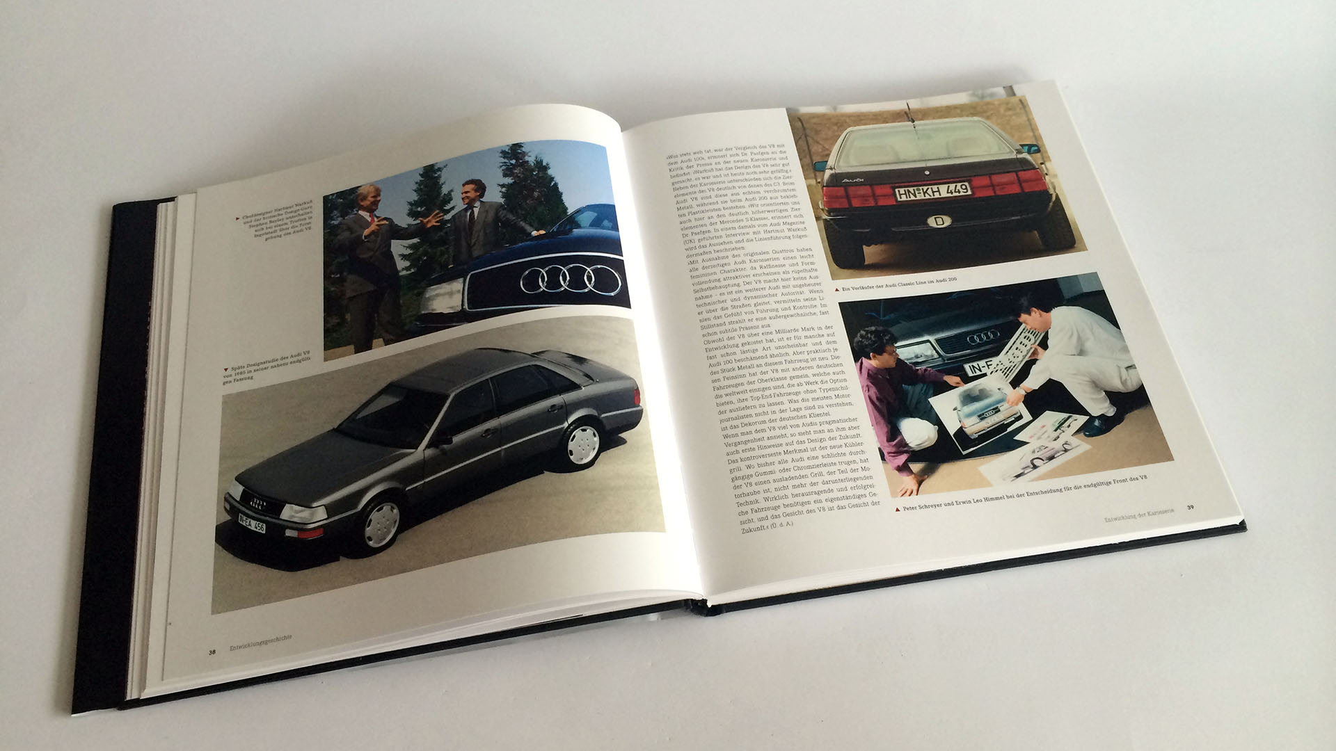 Aufgeteilt in neun Kapitel wird jedes Detail das mit dem Audi V8 im Zusammenhang steht ausführlich beleuchtet. Beginnend mit der Entwicklungsgeschichte, die sowohl die technische als auch gestalterische Entwicklung bis hin zum V8 detailliert beschreibt, macht das erste Kapitel sofort Lust auf mehr. Sehr umfangreich und interessant – wer wusste schon von Audi V8-Prototyp mit Porsche 928-Motor?