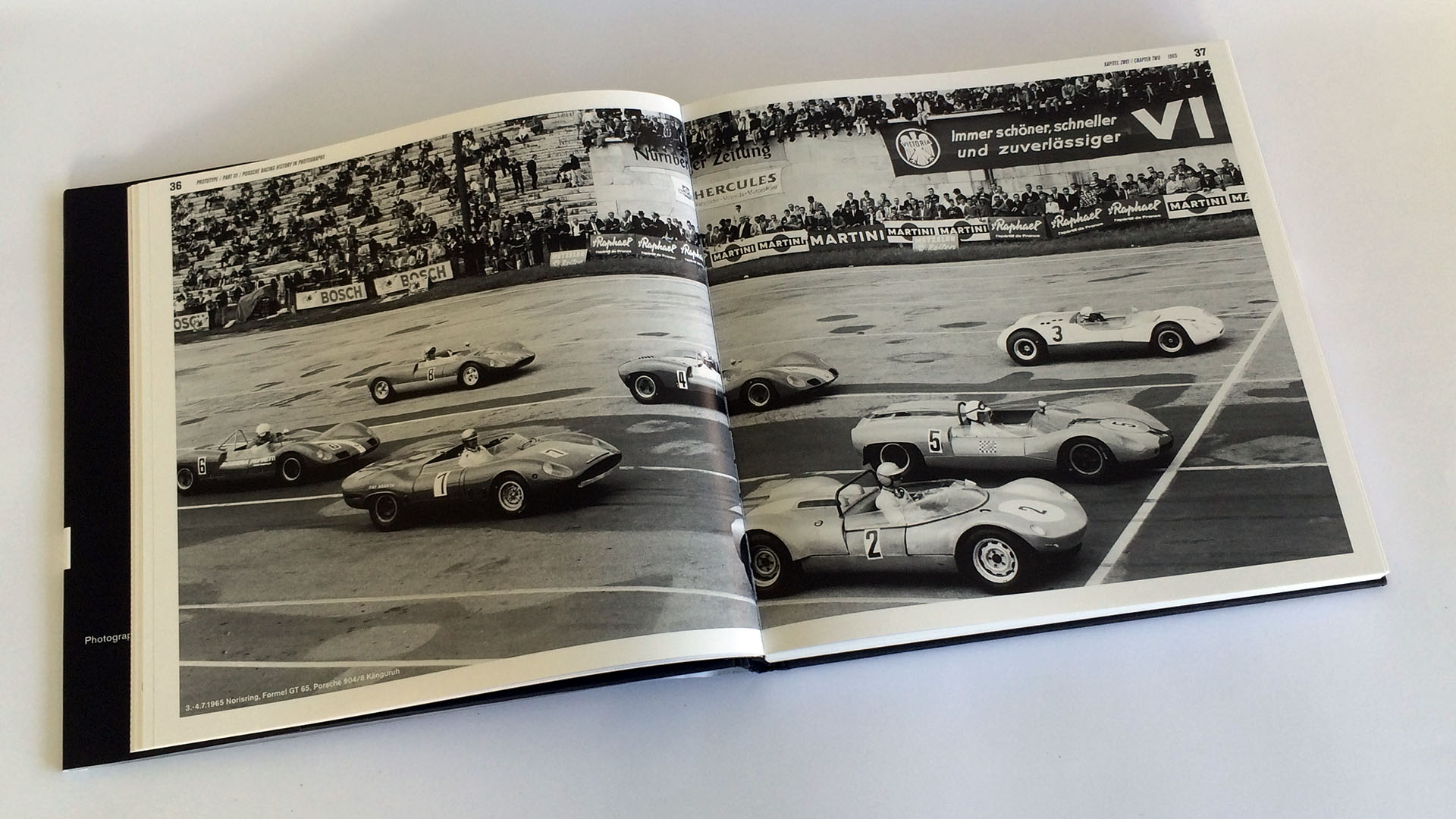 Nach dem Vorwort der Autoren und von dem ehemaligen Rennfahrer Jürgen Neuhaus gliedert sich der Bildband in 11 Kapitel. Dabei stellt jedes Kapitel ein Jahr dar. Begonnen wird folgerichtig mit dem Jahr 1964 in denen der Porsche 904 das Publikum sehr erfolgreich begeistern konnte. 1965 kamen dann noch diverse Derivate des 904 auf die Rennstrecke, z.B. der Känguru Spyder.