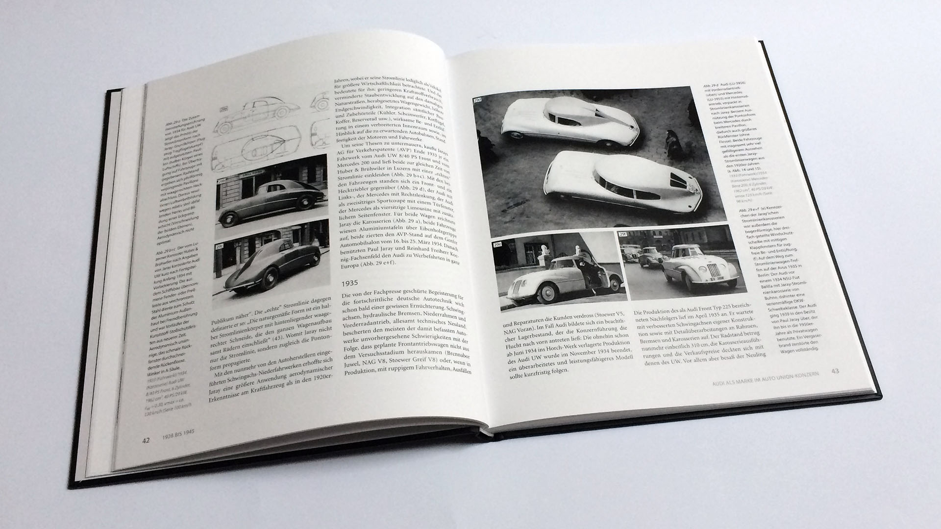 Zu Beginn wird in der Einleitung die Entstehung der Marke Audi und die interessanten Hintergründe der Namensfindung erläutert. Anschließend wird die Vorkriegszeit bis zum verheerenden zweiten Weltkrieg in zwei Kapiteln betrachtet. Wobei dort eine Auflistung der Raritäten sehr schwierig scheint, da durch viele individuelle Aufbauten von diversen Firmen fast jedes Modell ein Unikat darstellte. Schließlich wurde Audi Teil der Auto Union und nach und nach kam es immer mehr auch zu eigenständigen Karosserien und es entstanden interessante Raritäten wie z.B. die Stromlinienkarosserien nach Jaray.