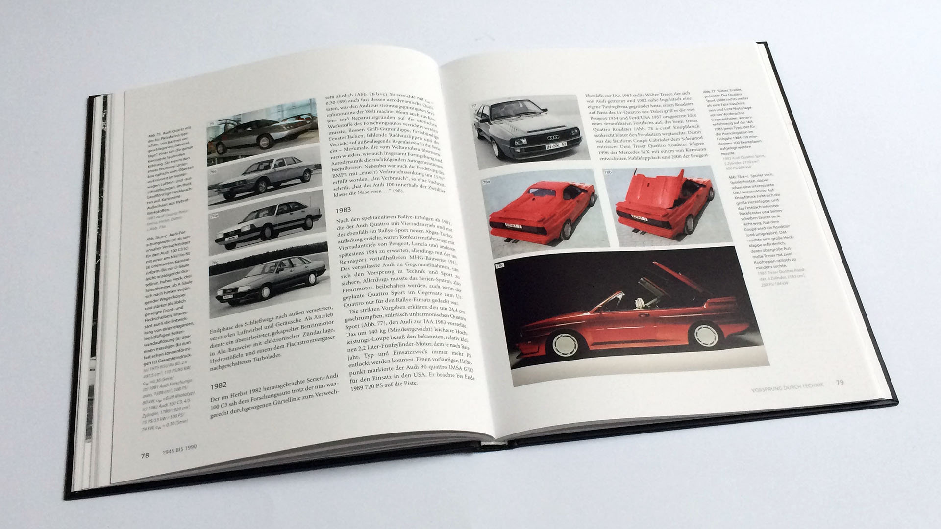 Das Buch zeigt sich äußerlich im selben Aufbau wie der Mercedes-Benz-Titel und bietet somit den selben Rahmen. Sowohl die Größe als auch der Umfang sind absolut identisch und der Titel stellt den Avus quattro ins Rampenlicht, dieses Concept wurde 1991 auf der Tokyo Motor Show vorgestellt und stellt sicherlich ein Highlight der Audi-Concept Cars dar.