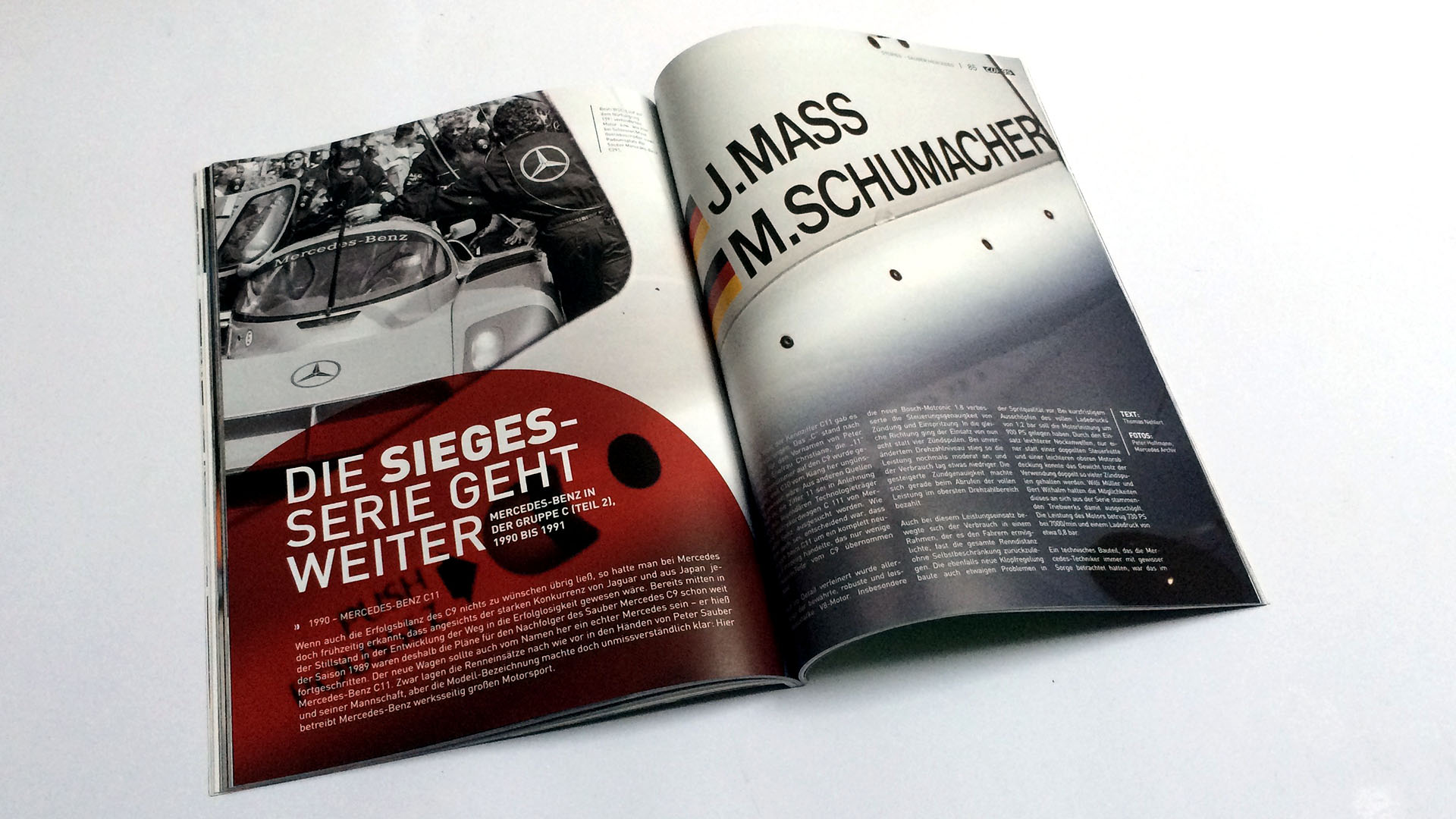 Viel Freude kommt auch bei Lesen des zweiten Teils der Sauber Mercedes-Story auf. Thomas Nehlert fügt zum ersten Teil aus der Ausgabe #05 die letzten beiden aktiven Jahre 1990 und 1991 in der Gruppe C mit gewohnter Fachkenntnis und viel Liebe zum Detail hinzu. Die Typen C11 und C291 stehen dabei logischerweise im Fokus. Aber auch der für die Saison vorgesehene C292 bleibt nicht unerwähnt. Leider entschied sich Mercedes-Benz doch noch gegen einen Einsatz und das Kapitel Gruppe C endete somit relativ abrupt.