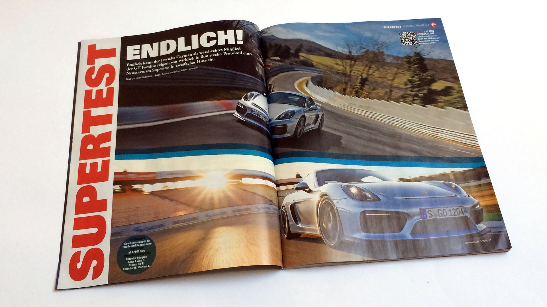 Das Heft war eine Premiere für den Supertest. Dieser wird zum ersten Mal nicht vom Erfinder Horst von Saurma geschrieben, sondern von seinem Nachfolger Christian Gebhardt. Dieser kann zur Premiere auch gleich mit einem lang erwarteten Porsche aufwarten – den Cayman GT4. Das erste GT-Modell der Cayman-Reihe welches fahrdynamisch der Legende 911 sehr nahe kommt und sogar schneller ist als der aktuelle 911 Carrera S. Der Test ist mit einem neuen, frischen Layout versehen, welches einen tollen Eindruck hinterlässt und den Umschwung nochmals verdeutlicht. Inhaltlich wird der Leser kaum etwas vermissen und die Übergabe kann als absolut gelungen gelten.