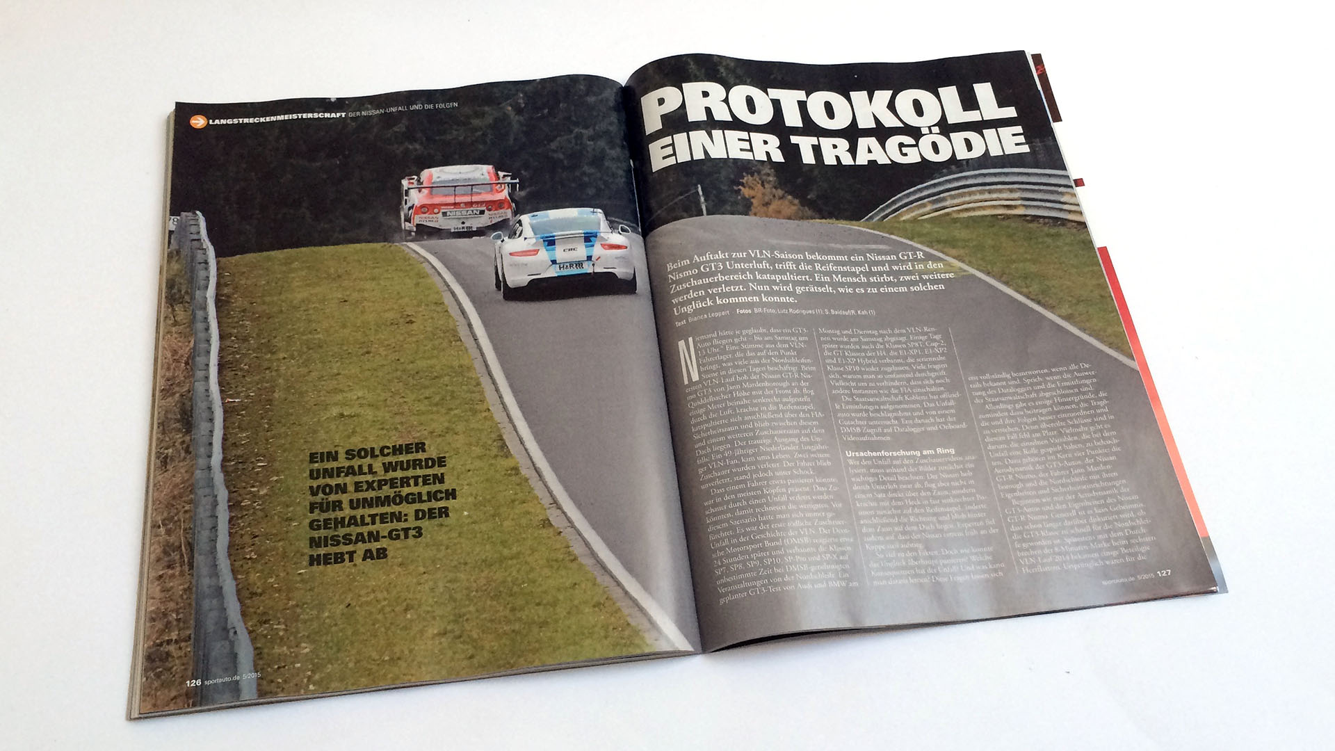 Im wie immer umfangreichen Motorsport-Teil der sport auto wird der Unfall des Nissan GT-R Pismo GT3 beim Saisonauftakt der VLN sehr kritisch untersucht. Im Fokus dieser Analyse stehen sowohl die Autos als auch der Nürburgring als Rennstrecke mit den neuralgischen Punkten. Wie groß ist die Gefahr eines Lift-Off bei den aktuellen GT3-Rennwagen und welche Streckenabschnitte des Nürburgrings können als besonders gefährlich eingestuft werden? Diese Fragen werden kompetent aufgearbeitet und auch die Rolle des Piloten gerade auf der anspruchsvollen Rennstrecken wird untersucht. Ein tolle Bericht über die Ursachen einer Tragödie.