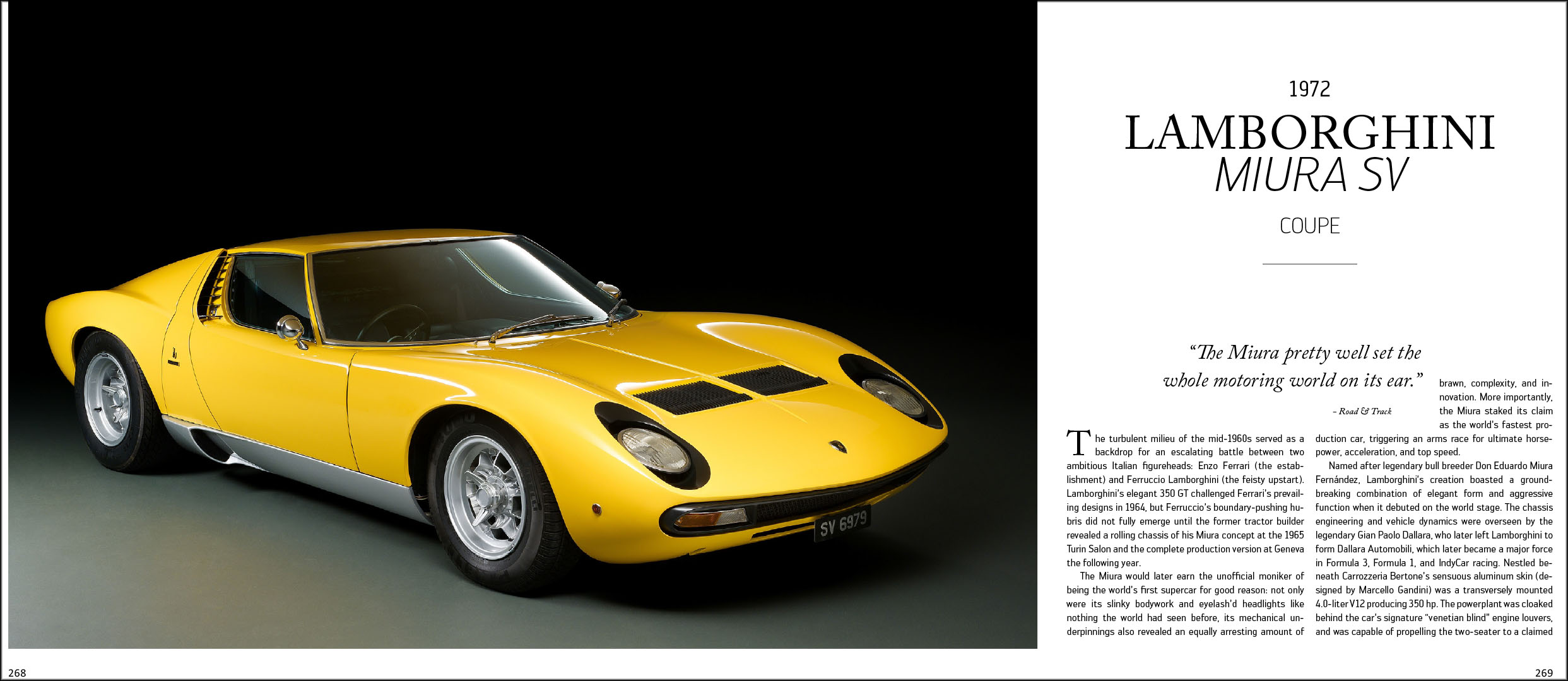 Das letzte Kapitel führt den Leser dann von 1970 bis ins Jahr 1997 und umfasst so eine große Zeitspanne aus der 13 Modelle vorgestellt werden. Dabei sind aber ausnahmslos Modelle bei denen sich der Kenner gerne den Kopf verdreht. Lamborghini Miura, Porsche 917, Lancia Stratos oder BMW M1 sind nur einige der vorgestellten Legenden. Das aktuellste berücksichtigte Modell ist der McLaren F1 GTR im der Rennkonfiguration welcher schon heute zu den Klassiker der Rennwagen gezählt werden darf.