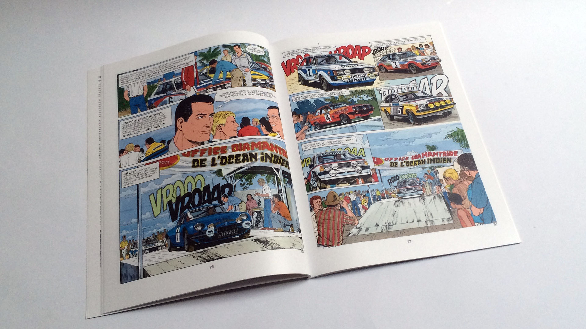 Beim Comic selbst handelt es sich um eine zweite Zusammenarbeit von Autor Jean Graton mit Ford. So fährt Vaillant den neuen Ford Escort im Rallye-Trim bei einer Rallye auf der Insel La Réunion einem Übersee-Départment von Frankreich. Auch weitere Autos wie eine Renault Alpine, ein Opel Kadett C Coupé oder ein Talbot Sunbeam fahren bei der Rallye mit. Alle Fahrzeuge sind ausnahmslos toll und sehr detailliert gezeichnet – ein beneidenswerte Umsetzung!