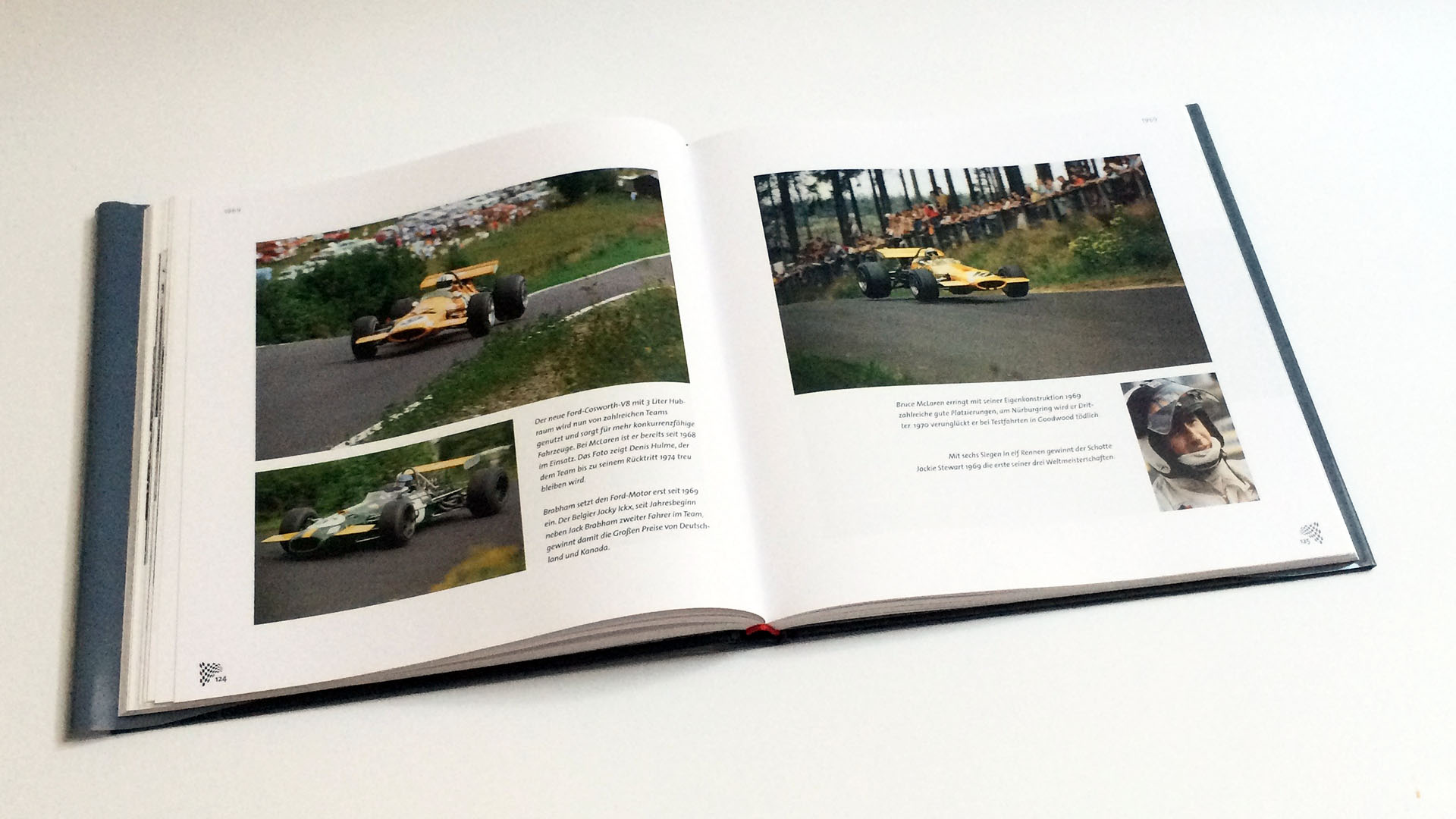 Mit Beginn der 60er Jahren erhöht sich der Anteil der Farbabbildungen kontinuierlich und lässt darauf schließen das bei der Bildauswahl auf bestes Material geachtet wurde. Die damals noch fliegende Formel 1-Boliden auf dem Nürburgring sind immer wieder ein fasznierender Anblick und die damaligen sehr rudimentären Absperrungen der Strecke machen die damalig vorherrschenden Gefahren sehr deutlich.