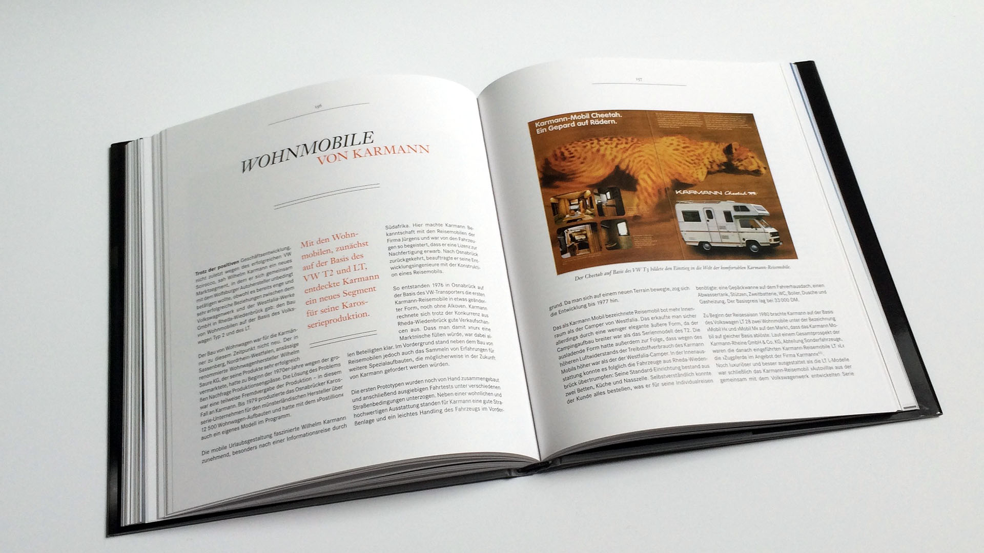 Das Buch startet mit einigen großen und tollen Abbildungen von klassischen Karmann-Modellen – ein bildgewaltiger Einstieg ehe das Vorwort durch den Autor den textlichen Einstieg in das Buch vollführt. Nach einer kurzen Einleitung startet das Buch welches sich mit vielen kurzen Abschnitten durch die Zeit von der Entstehung bis zur Insolvenz von Karmann durchzieht.