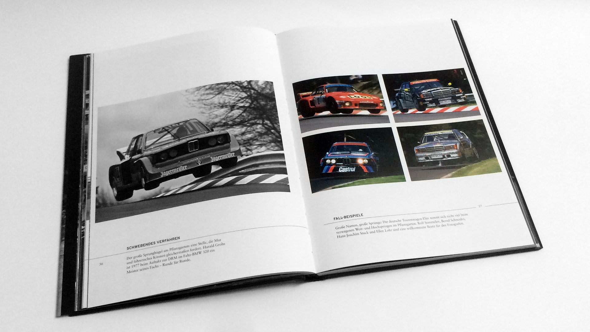Das Buch teilt dann die unterschiedlichen Rennwagen in Klassen ein und der Start gebührt den Tourenwagen. Diese boten schon immer einen besonderen Sport für die Zuschauer, da die Verbindung zum Auto in den Ausstellungsräumen der Autohäuser problemlos nachvollziehbar war. Nach einem wiederum kurzen aber prägnanten Text folgen eine Vielzahl von tollen Bildern die die Tourenwagen aller Klassen in Aktion zeigen. Vielmals mit nicht mehr allen Rädern auf der Strecke.