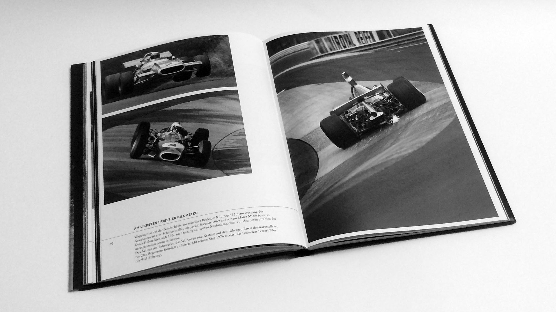 Dazu stellt das Buch tolle Aufnahmen aus dem Archiv von Ferdi Kräling vor, die sowohl die Historie als auch die Gegenwart gekonnt darstellen. Zudem bietet das Buch Texte aus der Feder von Gregor Messer die alle Bilder gekonnt kommentiert und weitere Texte mit interessanten Fakten bietetn. Das Vorwort gebührt einem großen Rennfahrer, der auch auf der Nordschleife immer sehr schnell unterwegs war: Jacky Ickx. Das Buch startet schließlich mit einem Überblick über den Mythos und die Legende der Nordschleife. Nach einen kurzen Text folgen viele doppelseitige Abbildungen die sowohl Rennaction als das Ambiente der Nordschleife aufzeigen.