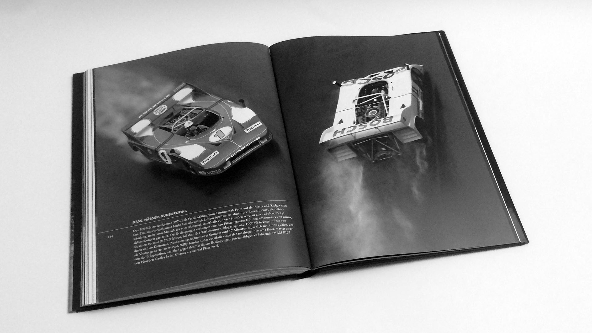 Eine hohe Faszination strahlen auch schon immer die Sportwagen aus – diese werden im nächsten Teil des Buches vorgestellt. Nach dem Text in dem selbstverständlich die Fabelzeit-Rundenzeit des Stefan Bellof im Porsche 956 nicht fehlt, folgen wiederum einmalige Aufnahme die auch die beeindruckende Bandbreite der Rennwagen aufzeigt. Neben der wiederum durchaus oft bedrohlichen Rennstrecken kann der Leser auch die Entwicklung der Fahrzeuge im Laufe der Jahre verfolgen. Angefangen mit dem Ferrari 250 LM bis hin zum Porsche 917/10 mit unglaublichen 1.000 PS wird die komplette Bandbreite des Sportwagen-Rennsports abgebildet. Dabei wird kaum ein berühmtes Auto vermisst sei es Chaparrel, Alfa Romeo, Matra, Ford oder eben Ferrari und Porsche.