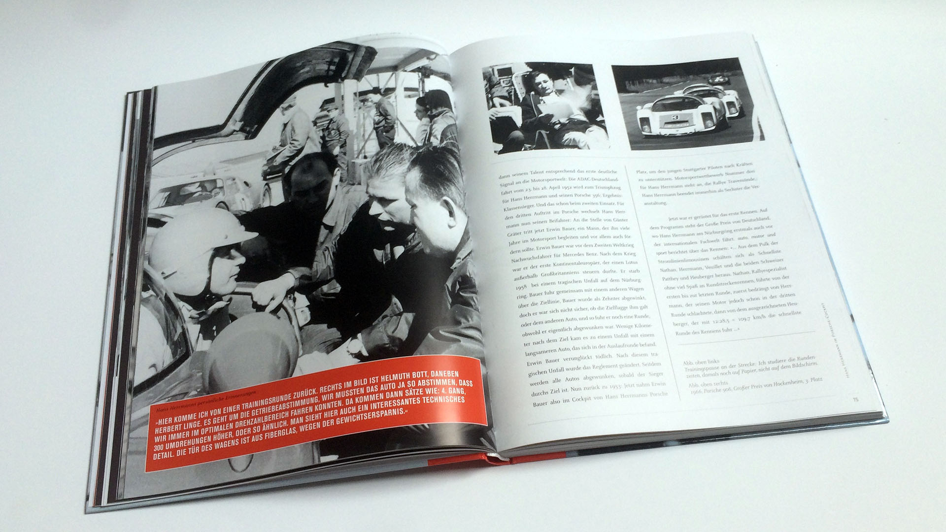 Im mittlerweile schon fünften Kapitel erfährt der Leser die Hintergründe zu Herrmann’s Jugend mit dem frühen Traumberuf Rennfahrer. Durch den Krieg geschuldet hatte Herrmann hier keine leichte Zeit und erlebte auch schreckliche Taten. Aber seinen Weg setzte er unbeirrt fort und im Jahr 1952 konnte er an seinem ersten Rennen im privaten Porsche 356 teilnehmen. Schnell ging es Schlag auf Schlag und Herrmann war schnell als Werksfahrer für Porsche unterwegs! Im Kapitel 6 wird auf beeindruckenden knapp 60 Seiten die Hass-Liebe zwischen Herrmann und Porsche gehuldigt und auch die oftmals schwierige Beziehung zu Huschke von Haustein erläutert. Seinen letzten Sieg errang er bekanntermaßen 1970 auf einem Porsche 917 in Le Mans.