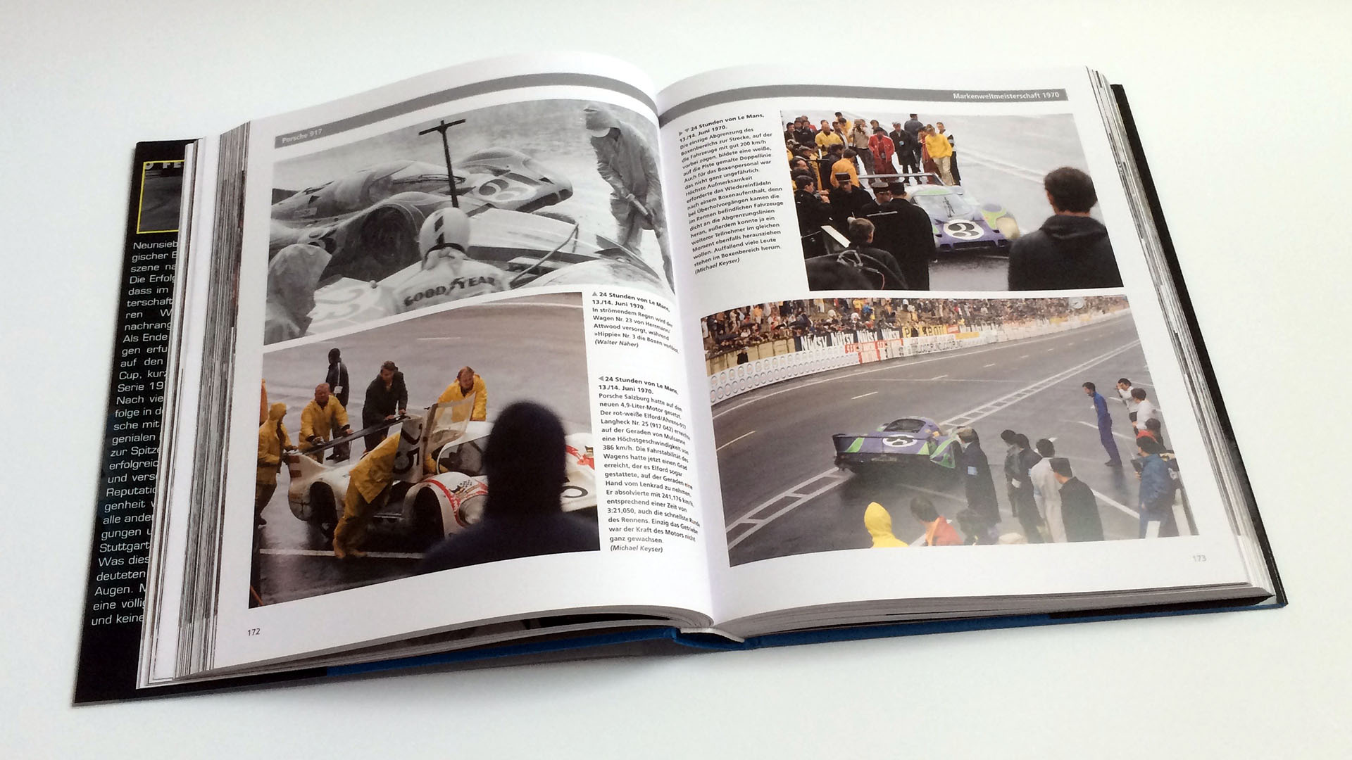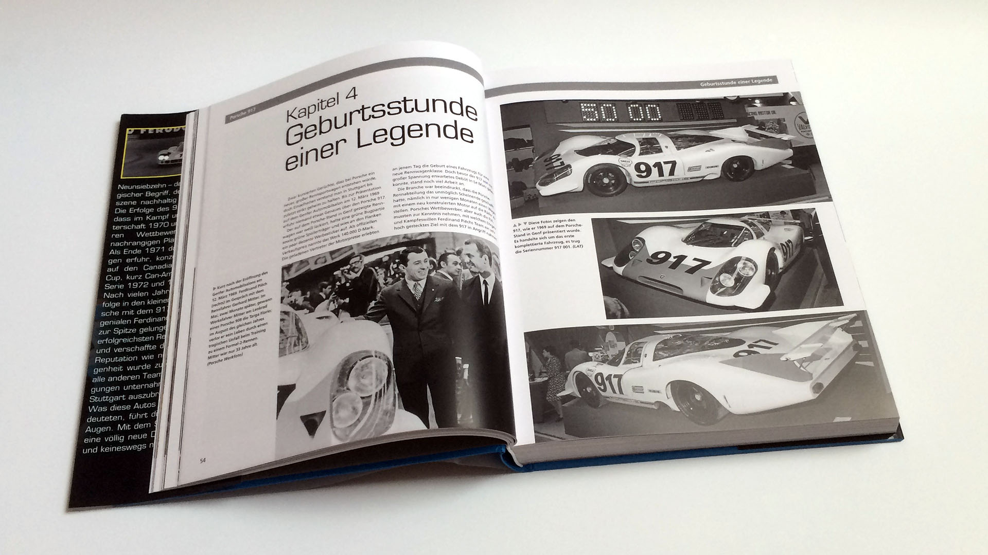 Fazit: Ein gewaltiger und beeindruckender Bildband der zudem mit gekonnten Texte die Geschichte des Porsche 917 aufarbeitet. Auf komplizierte technische Details verzichtet das Buch fast ganz und lässt so eine problemlose Verfolgung der Entwicklungen zu. Die verschiedenen Versionen des 917 werden gut unterschieden und auch die wenigen Straßenzulassungen sind erwähnt. Anekdoten zum „Le Mans-Film von Steve McQueen werden ebensowenig vermisst.