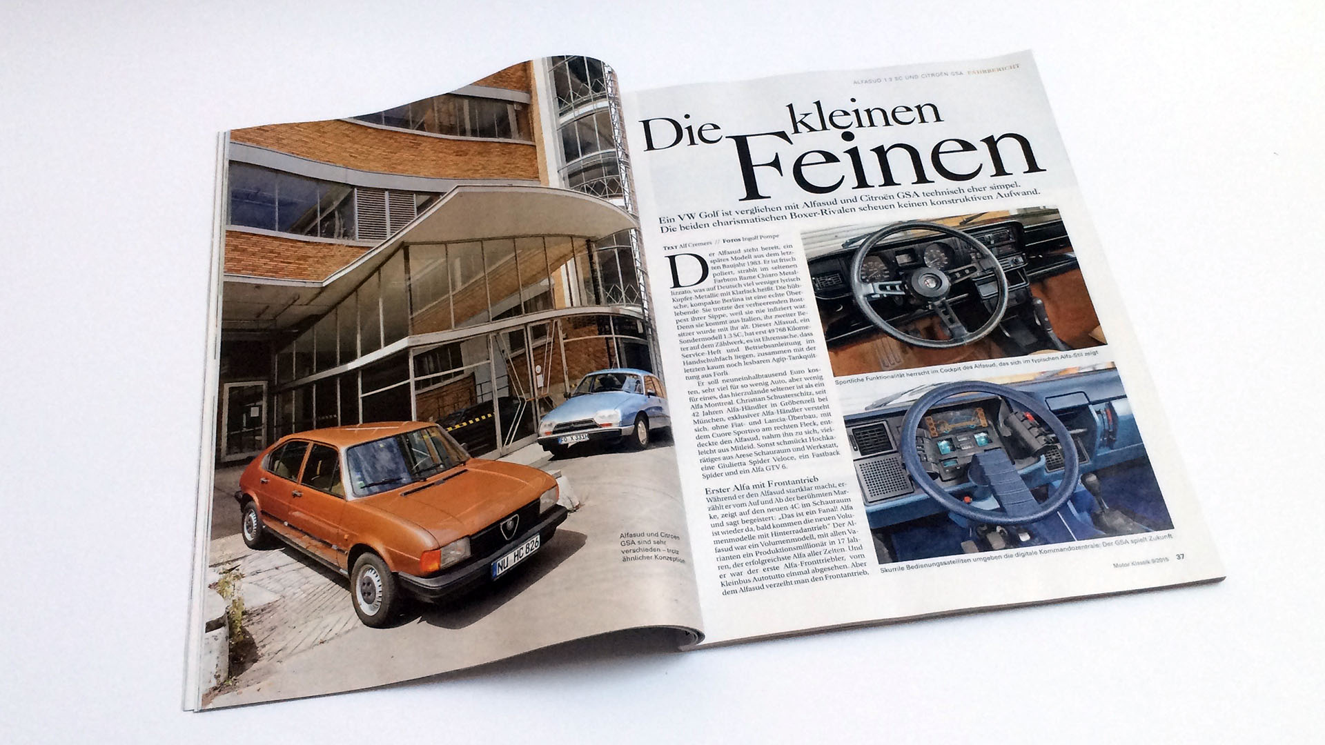 Zwei Exoten werden in einem Doppel-Fahrbericht betrachtet. Der Alfasud 1.3 SC und Citroën GSA waren damals schon ungewöhnliche Vertreter ihrer Klasse und heute sind sie kaum noch zu finden. Umso beeindruckender sind die beiden vorgestellten Exemplare die im perfekten Zustand. Wer eine interessante und nicht alltäglich Alternative in der klassischen Golf-Klasse sucht wird bei den beiden Exemplare eventuell fündig. Der Alfa gibt dabei den Sportler und der Citroën bietet eine komfortbewusste Alternative. Somit bieten beide eine Umsetzung im klassischen Sinne der Markenphilosophie,