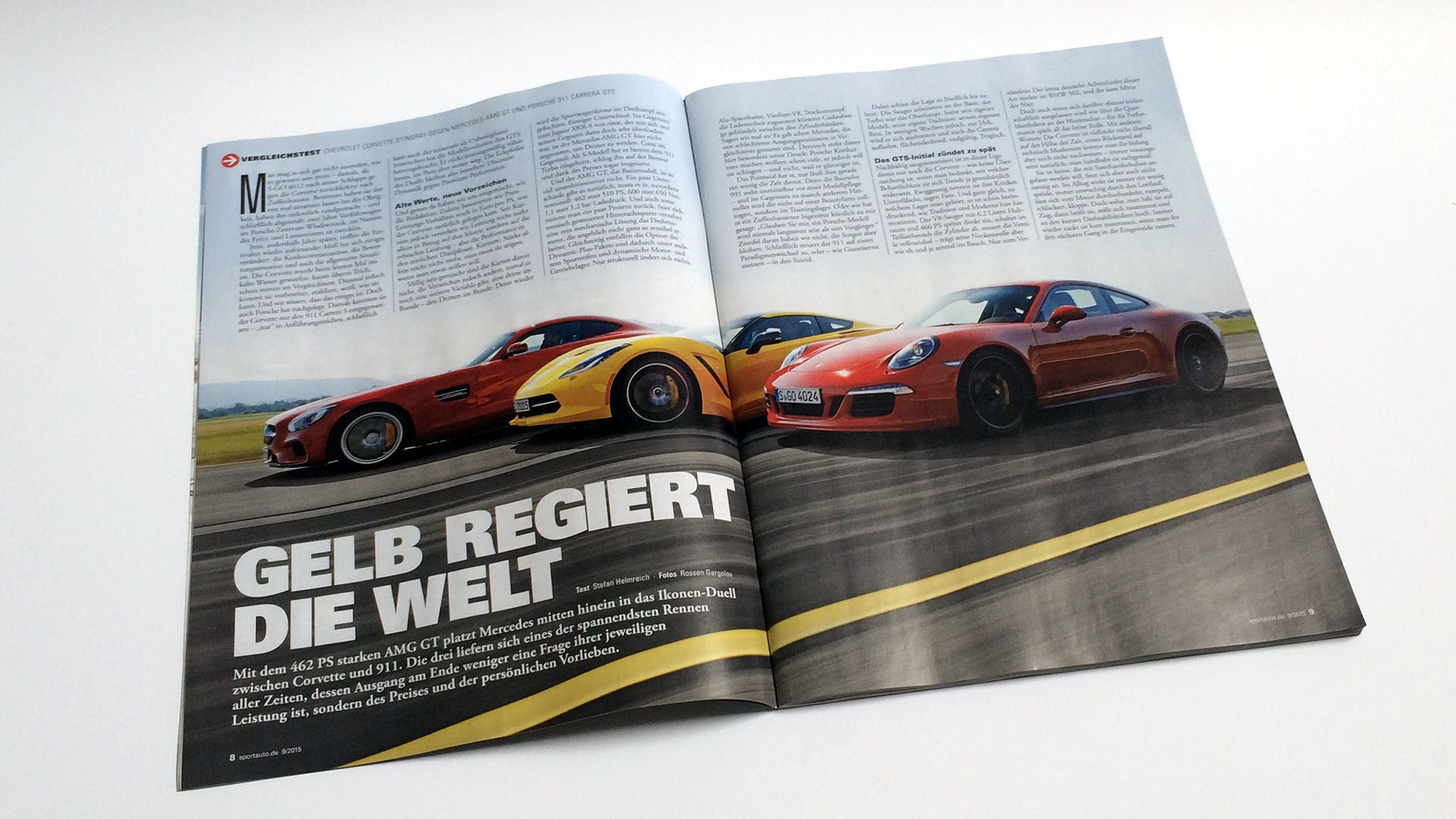 Das Titelthema bietet gleich eine dicke Überraschung. Die Chevrolet Corvette Stingray ist Sieger über den Porsche 911 Carrera GTS und den Mercedes-AMG GT. In einem vorangegangenen Vergleich schlug die damals noch frische Corvette bereits sensationell den 911 Carrera S – nun konnte auch die nachgewürzte GTS-Variante nicht mit der brutalen Ami-Powermaschine mithalten. Dabei ist das Punktesystem der sport auto inzwischen eher zu Ungunsten der Corvette angepasst worden und es gibt nur noch Punkte für das Verhältnis von Preis zu Performance und nicht Preis zu Leistung. Diese hat die Stingray mit ihren 466 PS reichlich, aber auch der AMG GT mit 462 PS und der Carrera GTS mit 430 PS sind wahrlich keine langsamen Fahrzeuge. Der Bericht von Stefan Helmreich macht aber deutlich das es sich um eine sehr knappe Entscheidung handelt und die letztendliche Wahl eher vom Geschmack des Käufers gefällt werden wird als von Punktetabellen. Wie wahr.