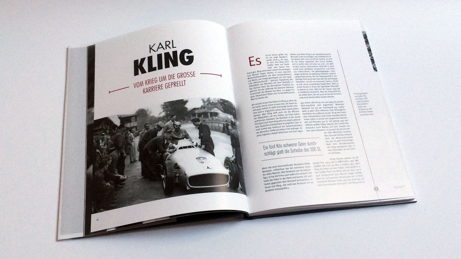 Nach Hans Herrmann und Edgar Barth stellt das Buch Karl Kling vor, der der Mannschaft von Mercedes-Benz angehörte und in den Jahren 1954 und 1955 in der Formel 1 antreten durfte. Dabei stand er aber im Schatten von Fangio und konnte bei 11 Grand Prix keinen Sieg erringen. Wolfgang Graf Berghe von Trips war deutlich erfolgreicher und war sogar im Begriff die Weltmeisterschaft zu gewinnen als er in Monza 1961 bei einem schrecklichen Unfall auf tragische sein Leben verliert – auch 15 Zuschauer werden Opfer des Unfalls.