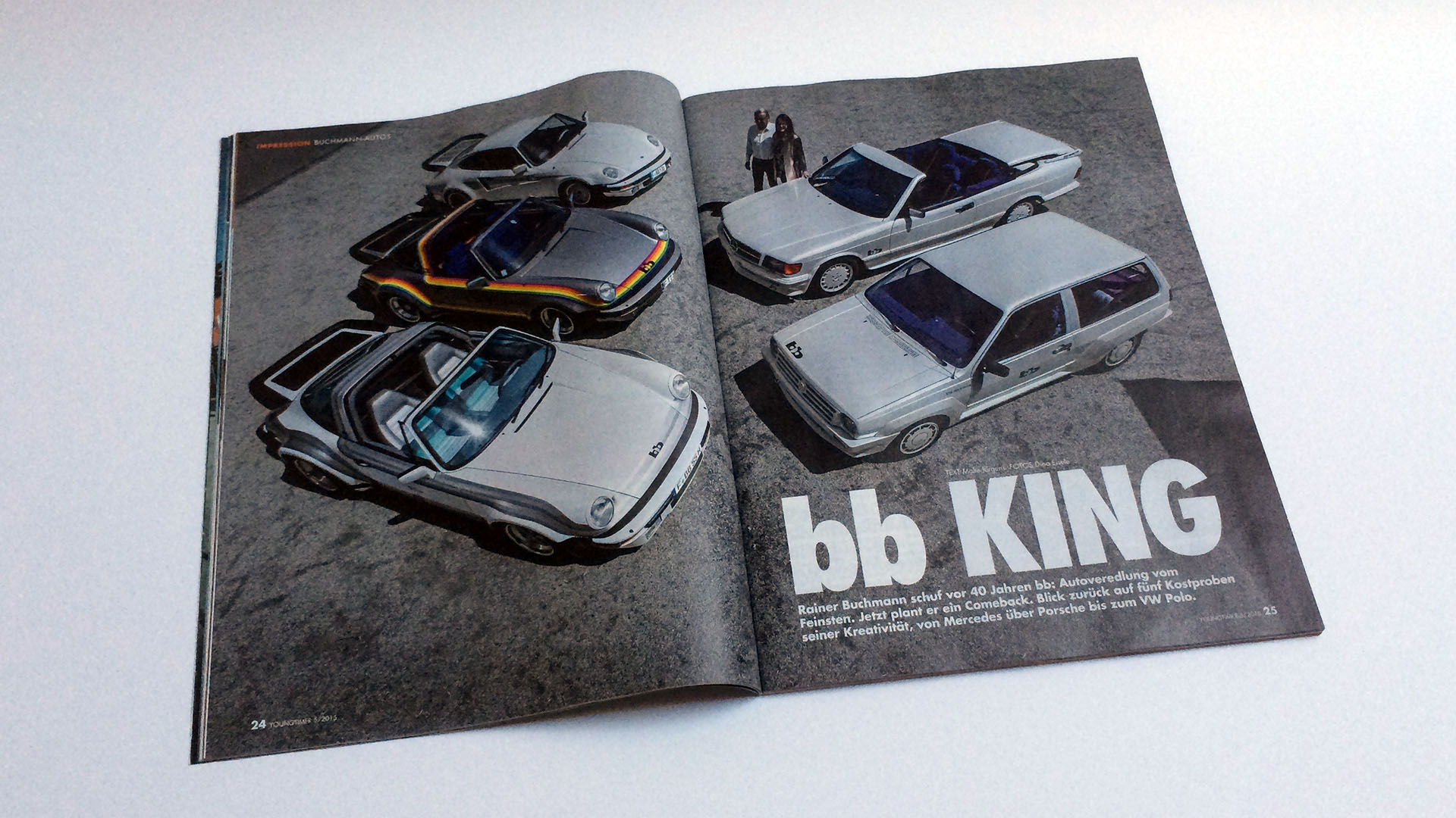 Eine tolle Sammlung von veredelten Fahrzeugen bietet das Magazin mit den Impressionen von fünf Kreationen von Rainer Buchmann und seiner Firma bb. Neben dem berühmten Regenbogen-Porsche stellen sich der Magic Top – ein Mercedes-Benz SEC mit zu öffnendem Blechdach, der Polo Paris – ein nach allen Maßen veredelter Volkswagen sowie der Flachschnauzer-911 mit der Lampen des 928 vor. Eine tolle und spektakuläre Übersicht über die Geschichte von bb. Dazu ergänzend ist auch die aktuelle Kreation der Moonracer, ein frischer aber gleichzeitig klassischer Porsche 911. Weiterführend kann noch das Buch zu bb empfohlen werden, welches hier schon vorgestellt wurde.