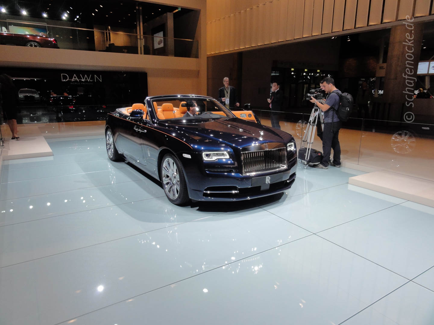 Rolls-Royce holt eine weitere klassische Modellbezeichnung aus der Schublade und präsentiert den Dawn. Dieser ist die offene Abwandlung des Coupés Wraith und bietet ein exklusives Frischluftvergnügen. Dem wie immer beeindruckenden Gewicht von 2.560 kg unbeladen nach DIN-Norm stemmt der V-12-Motor 570 PS Leistung und 780 Nm Drehmoment entgegen. Dies reicht selbstverständlich auch zum standesgemäßen Vorankommen.