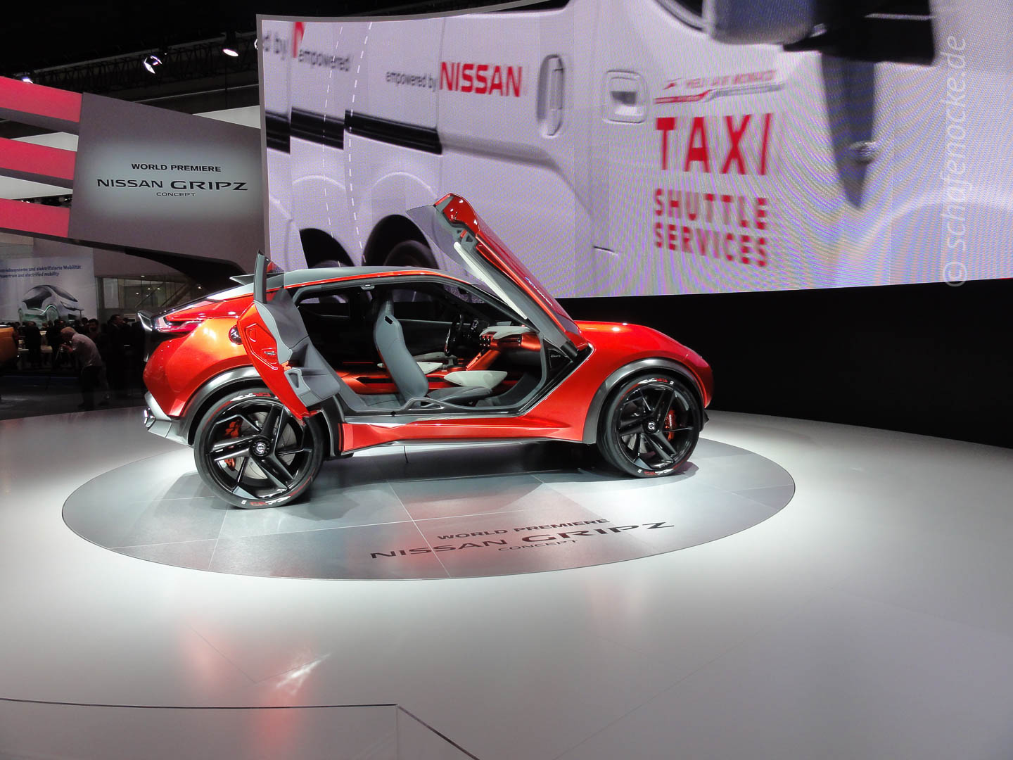 Mit dem Gripz Concept zeigt Nissan eine Studie eines radikalen Sport-Crossover. Sicherlich werden viele gleichzeitig beim Anblick der rot/schwarzen Studien mit den unglaublich großen Rädern stehen bleiben. Und die Reaktion werden zwischen „Geht ja gar nicht!“ und „Atemberaubend!“ liegen. Nissan schafft er schon mit vielen Modellen die Käuferschicht zu teilen und der Gripz setzt hier nahtlos an. Serienchancen sind hier aber gegen Null.