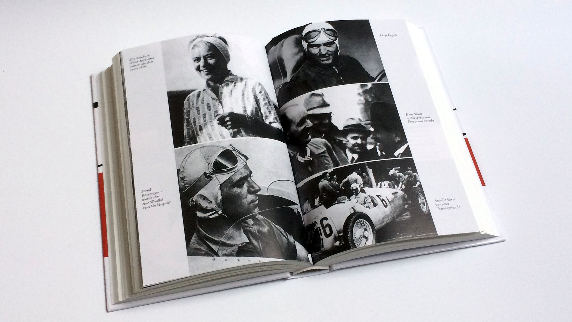 Das Buch erzählt unzählige Anekdoten und Episoden aus dem damaligen Leben auf und neben den Rennstrecken der Welt. So wechselt das Buch gekonnt zwischen Fahrer, technischen Entwicklungen und Renngeschehen. Unzählige berühmte Rennfahrer werden eingehend vorgestellt: Caracciola, Nuvolari, Rosemeyer, Seemann, Lang, und und und …
